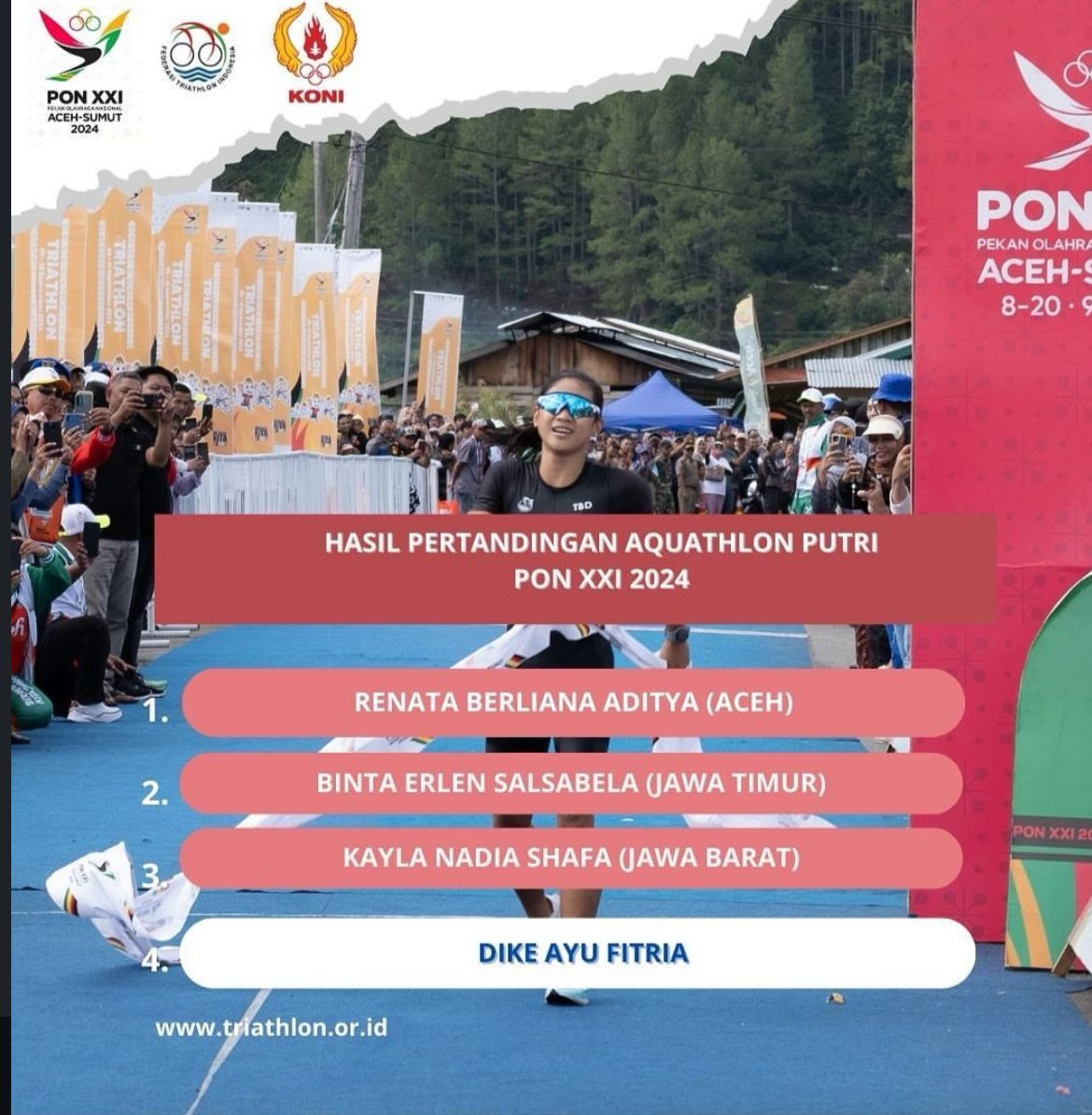 Hasil Lomba Pertandingan Duathlon Sprint Putri